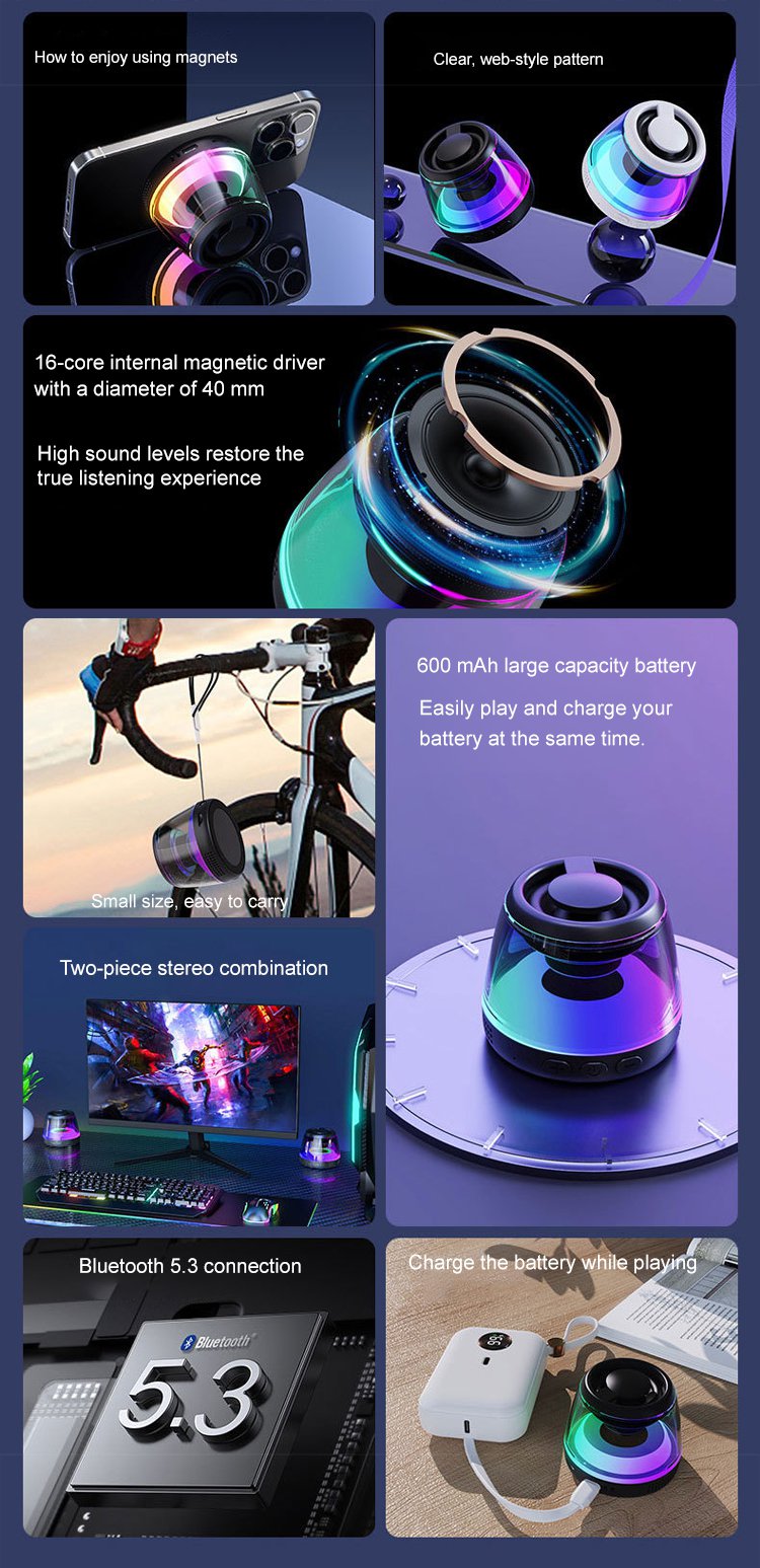 Magnetic Bluetooth Speaker with RGB Colorful Lighting